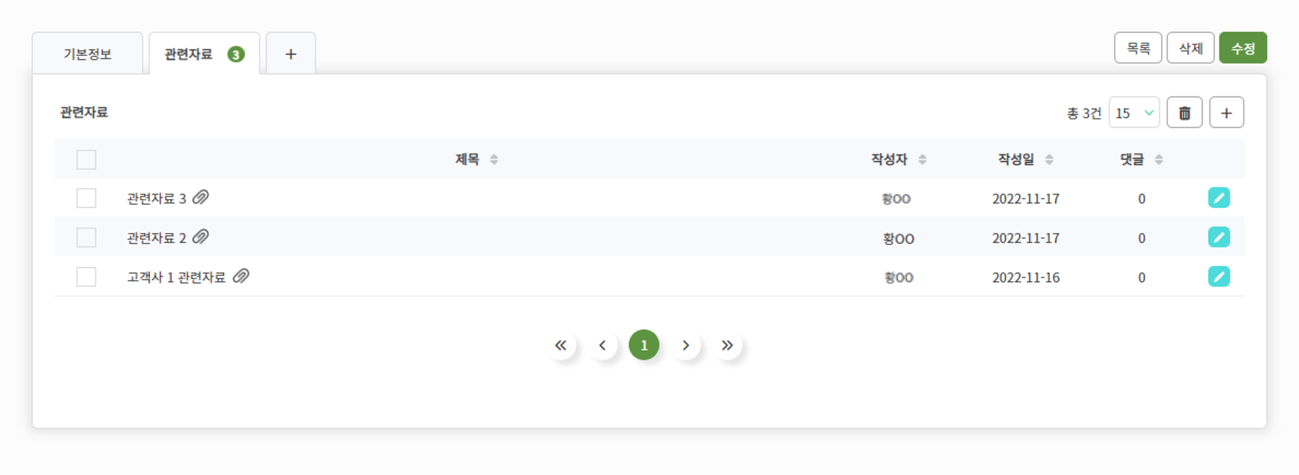 고객사1의 관련자료에 ‘관련자료3’항목이 등록되었습니다.