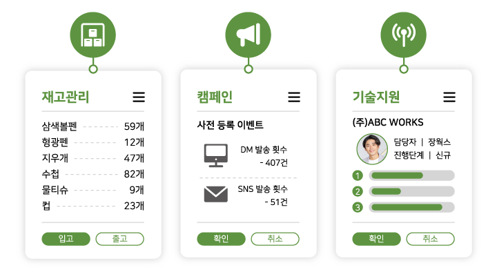 모든 활동이 한 곳으로 집중되면 정보는 공유되고, 활용성은 더욱 향상되며, 매출 향상 가능성은 더욱 높아집니다.