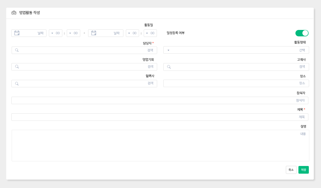 [2단계] 영업활동을 등록하는 기본 화면입니다. 관련 정보를 입력해주세요.